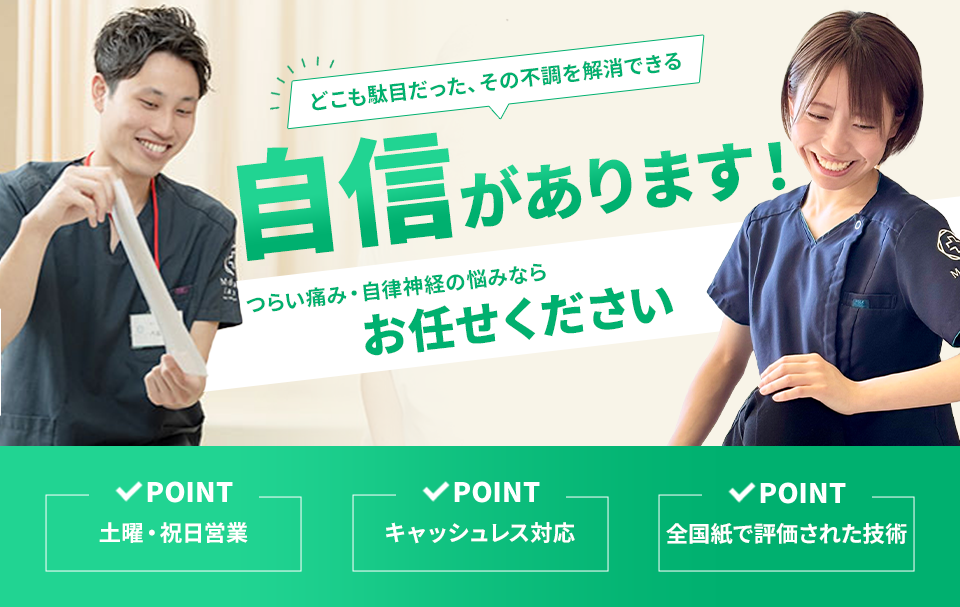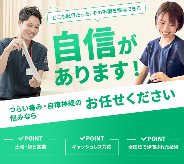 もし、これをお読みのあなたが「病院や一般的な整骨院に通っているが、効果を実感できない」「何度も症状が再発してしまう」などの悩みがあるのなら、当院は全力でサポートさせて頂きます。