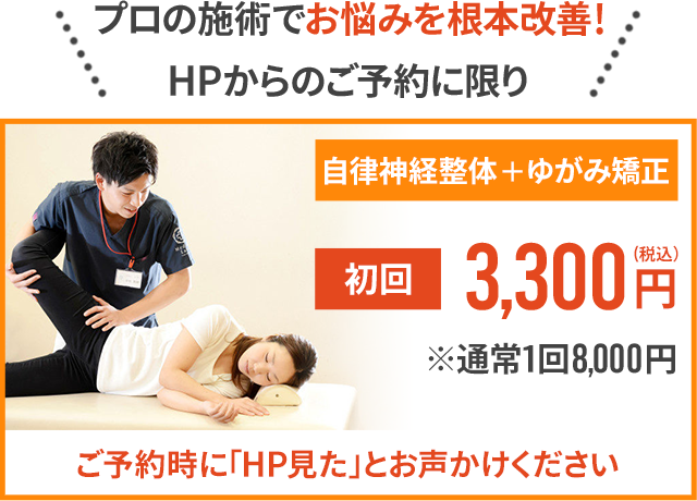 当院独自の「循環・歪み改善整体」は、そのような悩みを抱えている多くの方が変化を実感し、喜んで頂いている技術となりますのでご安心ください。
