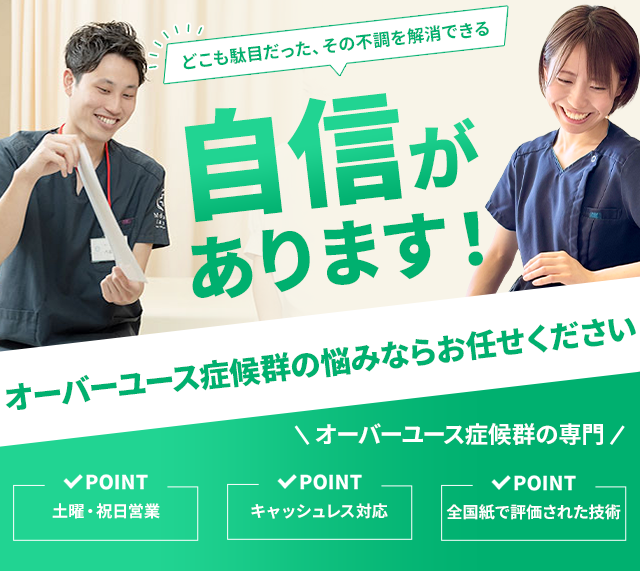他院とは一味も二味も違った「原因にアプローチする」当院の施術で、オーバーユース症候群の改善を一緒に目指してみませんか?